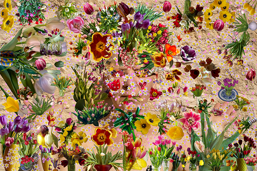 De bijgaande foto is #7RGBMetTulp, uit 2021, waarbij ik mijn eigen kale hoofd als canvas heb gebruikt. Door de auto-immuunaandoening Alopecia ben ik al mijn (wilde) haren kwijt, een mooie kans om van dit nadeel een voordeel te maken.